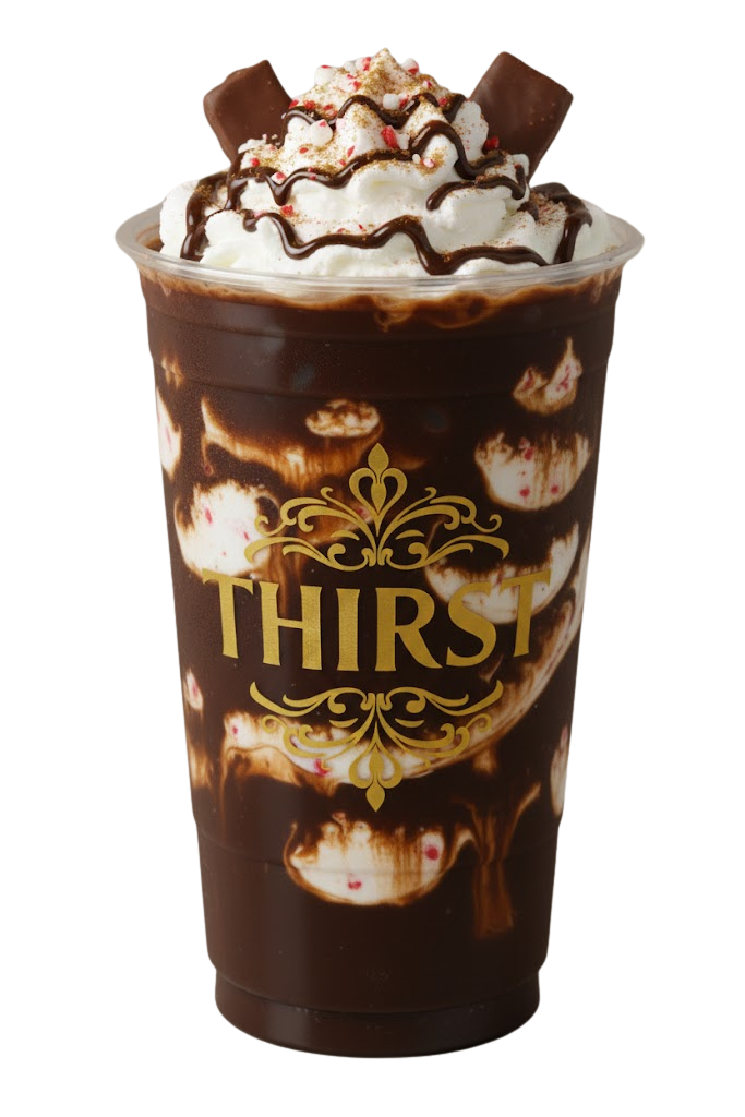 A luxurious dark mocha infused with crushed peppermint bark, delivering the perfect mix of deep chocolate and cool, minty sweetness. Served over ice or blended frozen, this holiday favorite is smooth, bold, and refreshingly decadent. Every sip feels like winter magic with a kick of chocolate comfort.